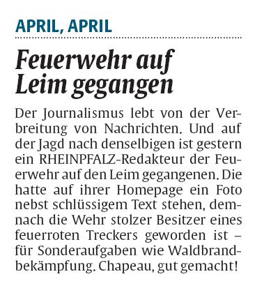 AUFKLÄRUNG: Aprilscherz der Feuerwehr