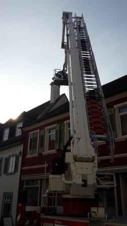 Aufgrund der langanhaltenden Kälteperiode bildeten sich auf dem Dach eines dreigeschossigen Hauses mehrerer Eiszapfen. Da an dem Tag die Temperaturen über dem Gefrierpunkt lagen stürzte einer der Eiszapfen ab und landete auf dem Gehweg. Da weitere Eiszapfen abzustürzen drohten verständigte der Hauseigentümer die Feuerwehr, um die Gefahr für Fußgänger und parkende Fahrzeuge zu beseitigen. Die Eiszapfen wurden mit Hilfe des Teleskopgelenkmastfahrzeugs entfernt und sicher zu Boden gebracht.