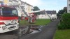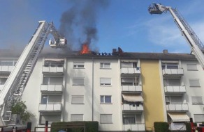 Wegen eines Technischen Defekts kam es im Bereich des Dachgeschosses eines Mehrfamilienhauses zu einem Dachstuhlbrand. Da das Dachgeschoss lediglich als Abstellraum und Wäschetrockenraum für die darunter liegenden Wohnungen diente, konnte sich der Brand bis zur Entdeckung bereits ausbreiten. Nach Eintreffen der ersten Einsatzkräfte wurde direkt ein Trupp unter Atemschutz ins Dachgeschoss zur Lageerkundung und Brandbekämpfung geschickt. Parallel wurde der Teleskopgelenkmast in Stellung gebracht um eine Brandbekämpfung von oben durchführen zu können. Da es sich bei dem Objekt um eine Reihenbebauung handelte und nicht ausgeschlossen werden konnte dass der Brand auf das Nachbargebäude übergriff wurde zusätzlich ein weiterer Teleskopgelenkmast der Werkfeuerwehr Daimler Germersheim AG nachgefordert. Das Fahrzeug wurde auf der anderen Seite der Brandstelle in Stellung gebracht. Parallel wurden die Feuerwehren Lingenfeld und Westheim alarmiert um weitere Atemschutzgeräteträger vor Ort zu haben. Aufgrund der Brandintensität hatte das Feuer auf den Nachbar Dachstuhl übergriffen. Mit der Brandbekämpfung waren gleichzeitig 4 Trupps unter Atemschutz in den beiden Gebäuden eingesetzt. Zwischenzeitlich wurde ebenfalls eine Brandbekämpfung über die beiden Teleskopgelenkmastfahrzeuge durchgeführt. Nachdem der Brand unter Kontrolle war konnten die ersten Kräfte aus dem Einsatz herausgelöst werden. Die Nachlöscharbeiten zogen sich noch bis in die späten Abendstunden. Da die beiden Gebäude unbewohnbar sind kamen viele der Bewohner bei Freunden und Bekannten unter. Um die Bewohner die keine Möglichkeiten hatten eine Übernachtungsmöglichkeit zu haben kümmerten sich Mitarbeiter der Stadtverwaltung Germersheim. Auch der Bürgermeister war vor Ort um sich ein Bild von der Lage zu machen. Zur Versorgung der Einsatzkräfte und der Bewohner wurde die SEG-Betreuung des Landkreises Germersheim alarmiert. Die Ermittlungen der Kriminalpolizei sind inzwischen abgeschlossen.