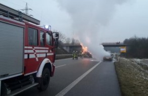 Aus bislang ungeklärter Ursache begann ein Fahrzeug auf der B9, in Fahrtrichtung Karlsruhe, zu brennen. Der Fahrzeugführer steuerte sein Fahrzeug auf den Seitenstreifen und verständigte die Feuerwehr. Bei Eintreffen an der Einsatzstelle befand sich das Fahrzeug in Vollbrand. Das Feuer konnte durch einen Trupp unter Atemschutz schnell abgelöscht werden. Die B9 war während der Löschmaßnahmen in Fahrtrichtung Karlsruhe voll gesperrt. Bis zum abschleppen des Fahrzeugs konnte bereits eine Fahrspur wieder freigegeben werden.