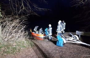 Amtshilfe für die Polizei bei der Sachbergung aus einem Gewässer. Bei den auf dem Wasser / Eis treibenden Gegenständen handelte es sich vermutlich um Diebesgut.