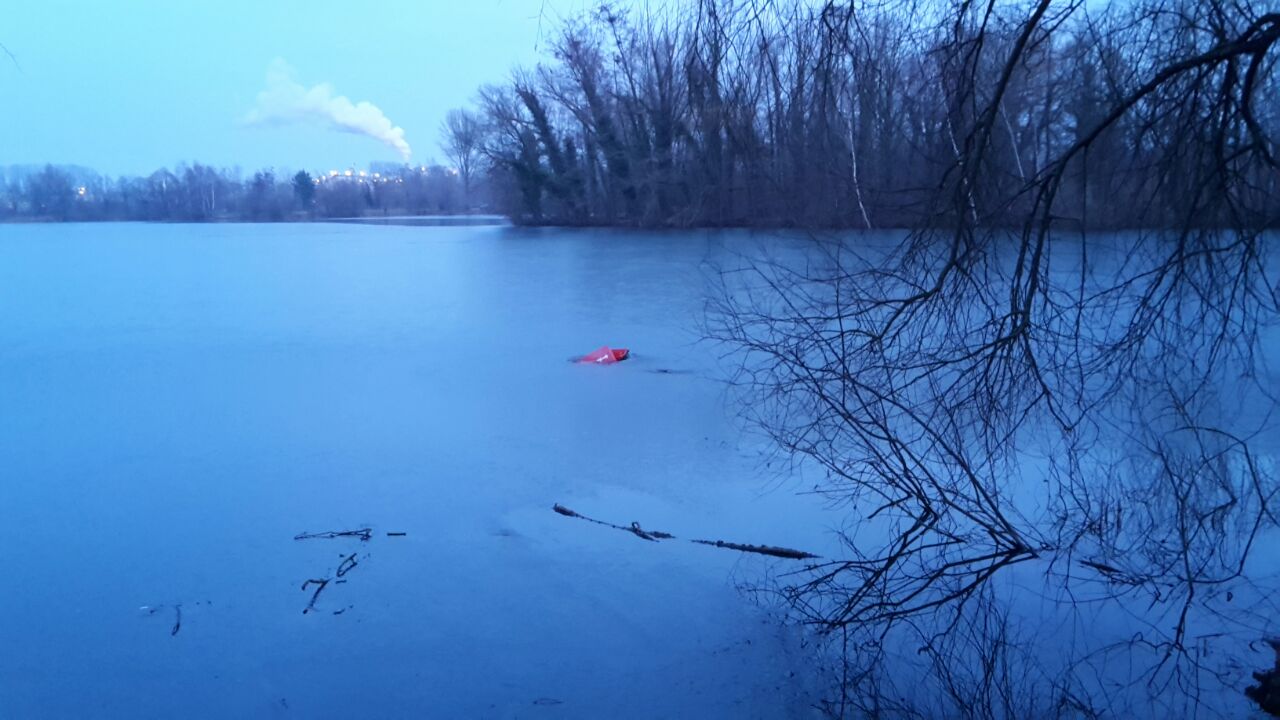 Amtshilfe für die Polizei bei der Sachbergung aus einem Gewässer. Bei den auf dem Wasser / Eis treibenden Gegenständen handelte es sich vermutlich um Diebesgut.