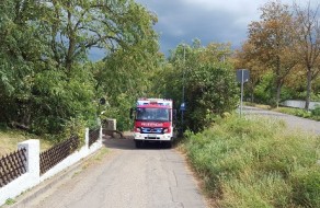 Anwohner meldeten einen abgebrochen Ast, der in einen Garten stürzte. Bei dem Ast handelte es sich um einen Ast größeren Durchmessers, der eine Mauer und einen Anhänger beschädigt hat. Der Ast wurde im Bereich des Gartens entfernt. Im Anschluss wurde die Einsatzstelle an den Eigentümer übergeben. Der Baum muss durch eine Fachfirma entfernt werden.