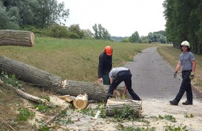 Größerer umgestürzter Baum blockierte einen Radweg. Baum mittels Motorsäge entfernt, Radweg grob gereinigt und die Einsatzstelle dem Städtischen Betriebshof übergeben.