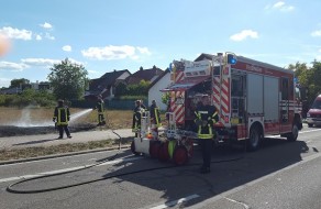 Kurz vor 17 Uhr kam es durch den fahrlässigen Umgang mit Feuerwerkskörpern zu einem Brand von 80qm Wiese. Das Feuer wurde mit der Schnellangriffseinrichtung des HLF20 und 600 Liter Wasser abgelöscht. Da die komplette Fläche durch die aktuellen Wetterbedingungen komplett ausgetrocknet war, wurde diese auch noch etwas bewässert. Gegen 17:30 konnte der Einsatz beendet werden.