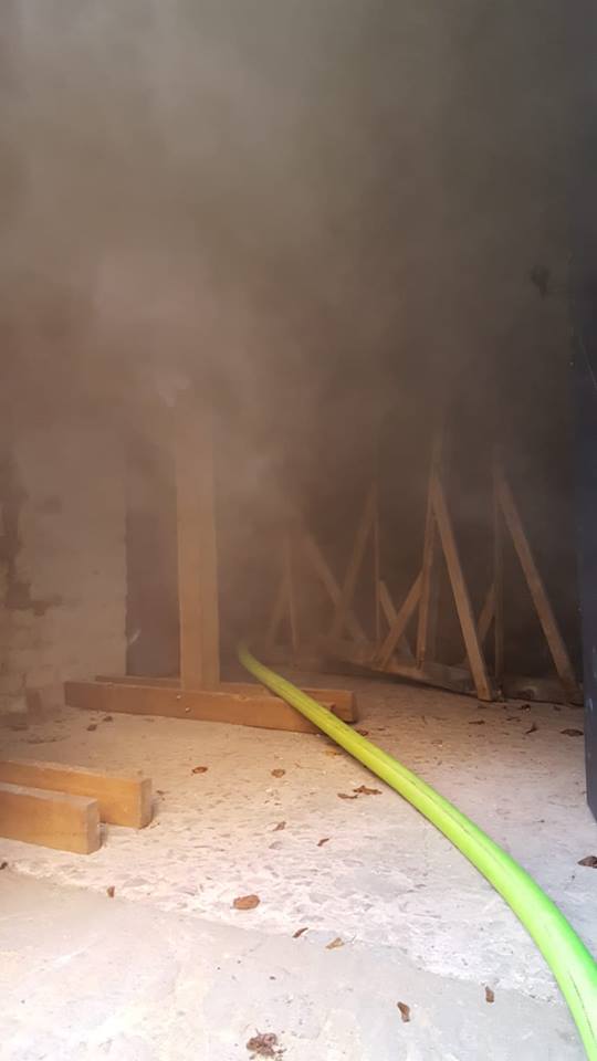 Der Angriffstrupp rüstete sich auf der Anfahrt mit umluftunabhängigem Atemschutz aus und ging direkt in das Gebäude zur Brandbekämpfung vor. Bei nahezu Nullsicht durch starke Verrauchung wurde die Suche nach dem Brandherd erschwert, dennoch konnte dieser schnell gefunden werden.