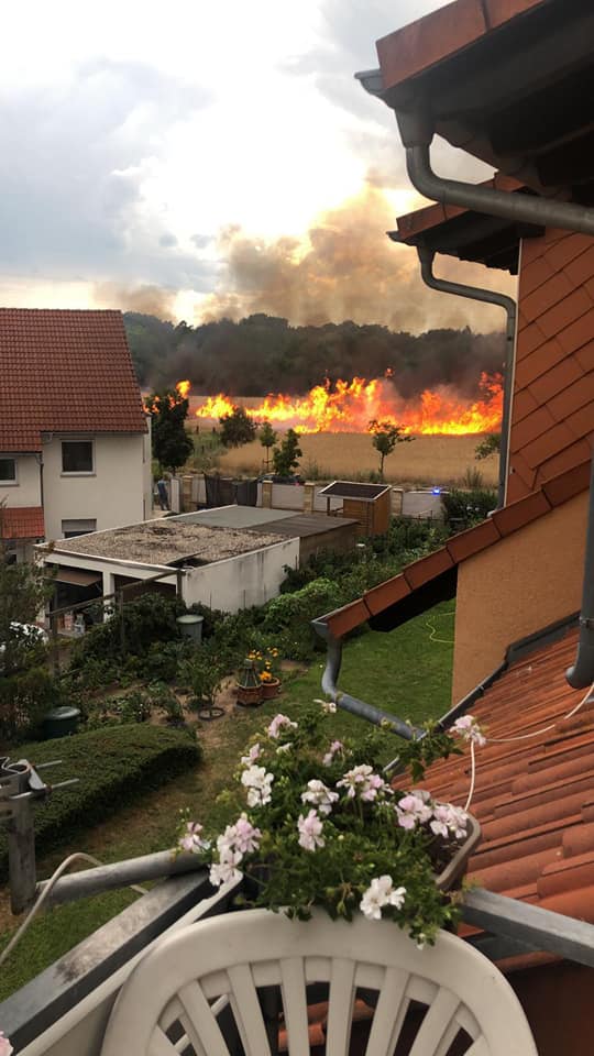 Das Feld grenzte unmittelbar an ein Wohngebiet, weshalb die Wasserversorgung aus dem öffentlichen Hydrantennetz sicher gestellt werden konnte. Die Wohngebäude wurden ebenfalls nicht betroffen.