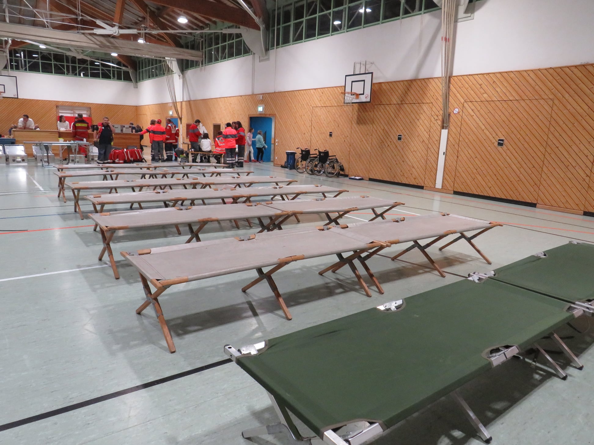 Das Germersheimer Krankenhaus musste komplett evakuiert werden. Die bettlägerigen Patienten wurden durch Sanitäts- und Rettungsdienst in das Krankenhaus in Kandel verlegt. In der Sporthalle der Eduard-Orth-Grundschule kamen weitere Patienten unter. Das Klinikpersonal verrichtete nun seinen Dienst in der Sporthalle.