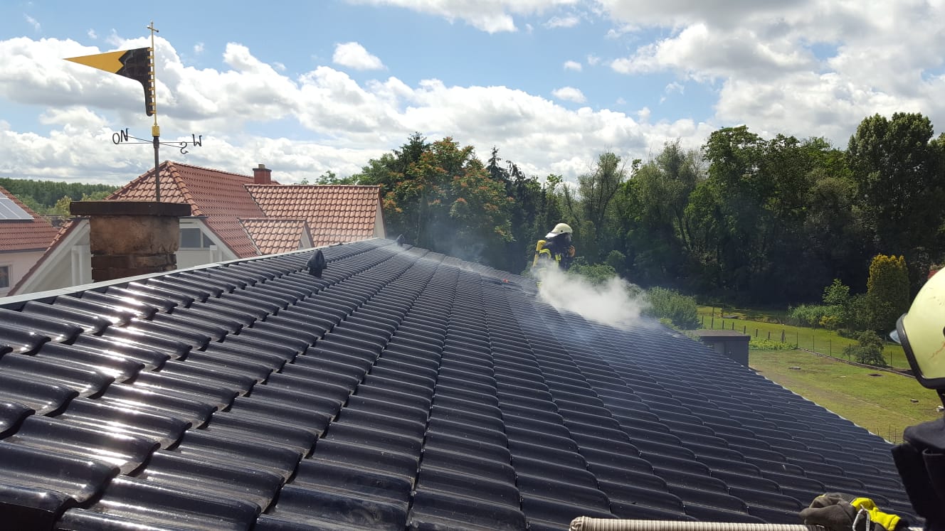 Zur Mittagszeit ereilte uns ein Alarm mit dem Stichwort „Dachstuhlbrand“. Nach schneller Erkundung konnte die Meldung bestätigt werden. Ein Angriffstrupp kämpfte sich unter schwerem Atemschutz, beengten Verhältnissen und starker Hitze zur Brandstelle vor. Schnell konnten mittels einem C-Strahlrohr die Flammen abgelöscht werden. Das schnelle und effektive Eingreifen zeigte Wirkung – ein schlimmeres Ausmaß konnte verhindert werden. Im Anschluss wurde die Einsatzstelle belüftet und an den Eigentümer übergeben.