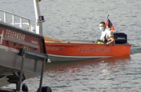 Zwei Minuten nach dem ersten Alarm ereilte uns der nächste Notruf. In diesem wurde uns gemeldet, dass eine Person im Lingenfelder Baggersee ertrinken würde. Daraufhin rückten wir sofort mit unseren Booten nach Lingenfeld aus, um die dortige Wehr zu unterstützen.