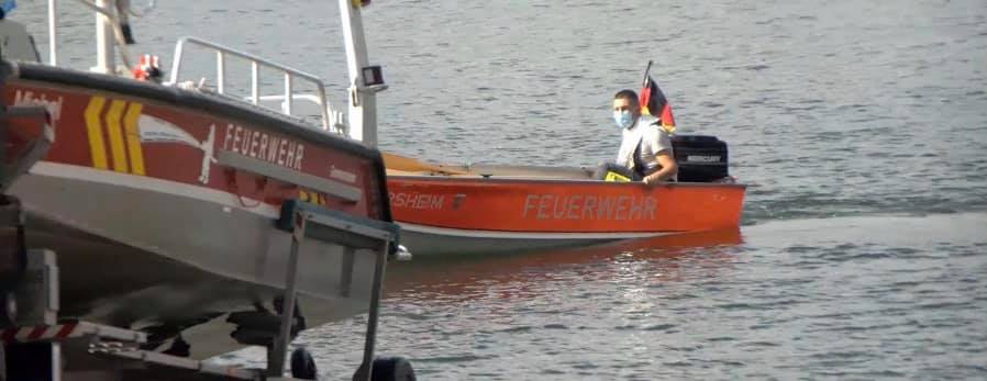 Zwei Minuten nach dem ersten Alarm ereilte uns der nächste Notruf. In diesem wurde uns gemeldet, dass eine Person im Lingenfelder Baggersee ertrinken würde. Daraufhin rückten wir sofort mit unseren Booten nach Lingenfeld aus, um die dortige Wehr zu unterstützen.