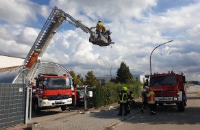 Überörtliche Hilfe mittels Hubrettungsfahrzeug bei einem Werkstattbrand im benachbarten Philippsburg. Über unseren Gelenkmast wurde die Dachhaut geöffnet und Teile der Isolation entfernt. Dadurch konnten auch letzte Glutnester mittels Wärmebildkamera lokalisiert und abgelöscht werden.