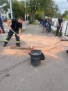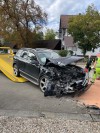 Verkehrsunfall Fahrzeug gegen Mauer in der Innenstadt mit auslaufenden Betriebsmitteln. Öl mittels Bindemittel aufgenommen, Batterie abgeklemmt und Brandschutz sichergestellt.