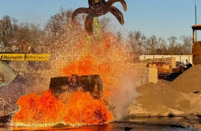 Zwei brennende Container mit Metallspänen waren am frühen Nachmittag die Ursache für eine weithin sichtbare Rauchentwicklung über dem Germersheimer Industriegebiet. Das Brandgut wurde mittels Kran ausgeschüttet und flächig verteilt. Im Anschluss wurde mit mehreren LKW Sand aus einem nahegelegenen Hafenbetrieb an die Einsatzstelle transportiert um den Metallschrott abzudecken und somit die Flammen zu ersticken.