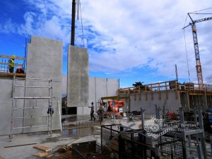 Seit Ende Juli / Anfang August geht es auf der Baustelle in die Höhe. Die Decken zwischen EG und 1. OG werden eingeschalt, mit ausreichend Sprießen sicher abgestützt und teilweise wird auch schon betoniert.