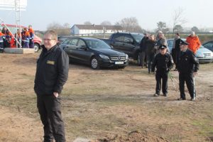 Endlich geht es los…..Mit dem symbolischen ersten Spatenstich haben Feuerwehrführung, Politik und Verwaltung am Freitag den 24. Januar den Startschuss für den Bau eines neuen Feuerwehrhauses am verkehrsgünstigen Standort „Hexenbrücke“ -zwischen Südpfalz-Kaserne und B9- gegeben.